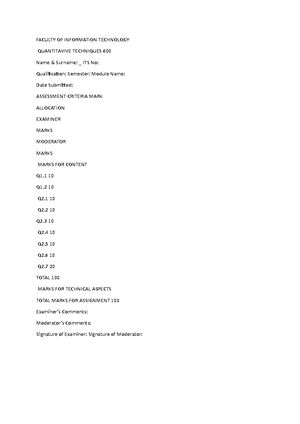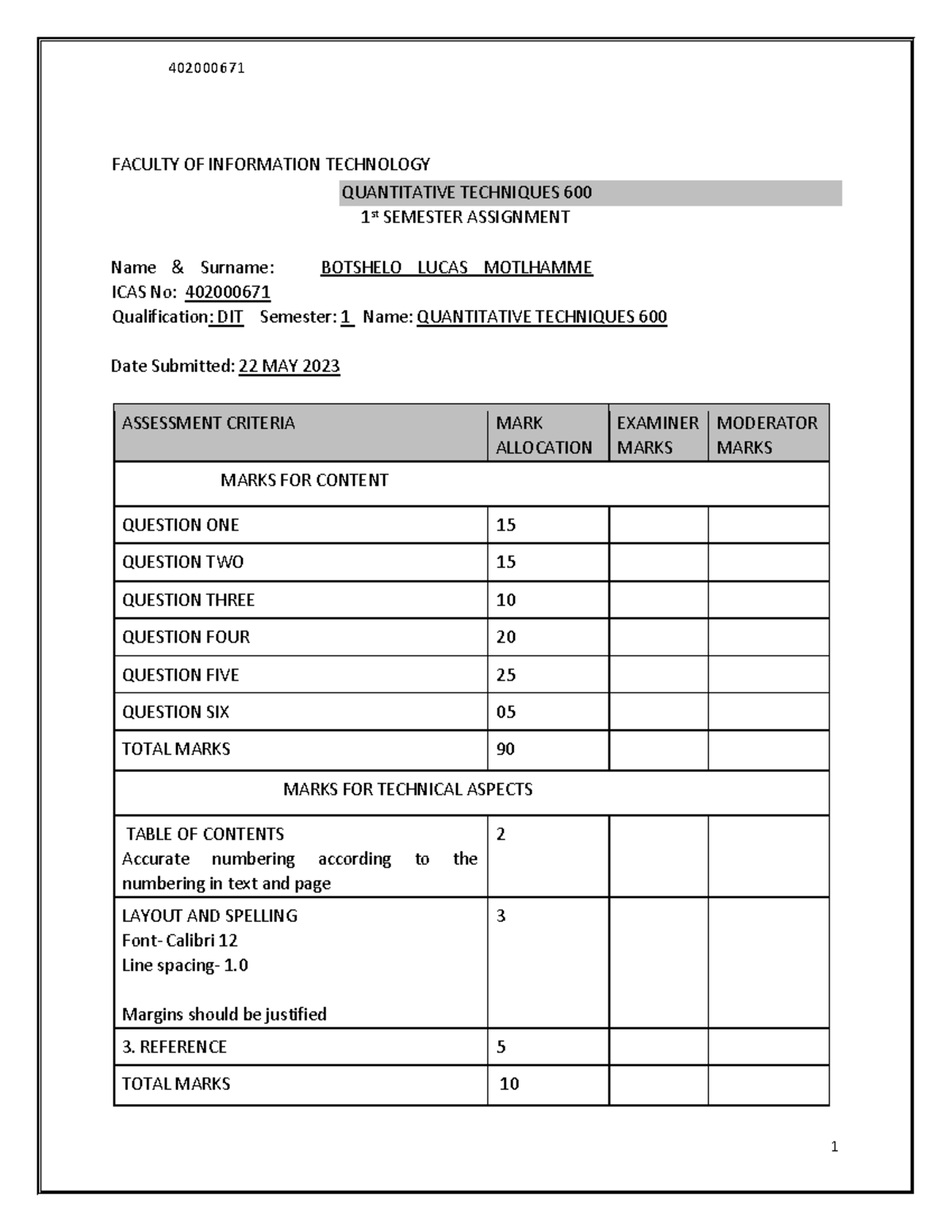 Quantitative Techniques 600 Assignment 1.pdf - FACULTY OF INFORMATION ...