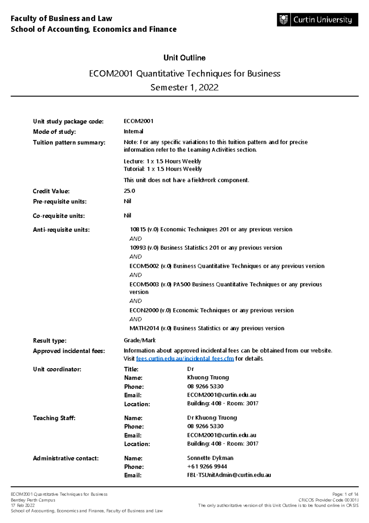 QUANTITATIVE TECHNIQUES 600 2022S1QTS600 .pdf - QUANTITATIVE TECHNIQUES ...
