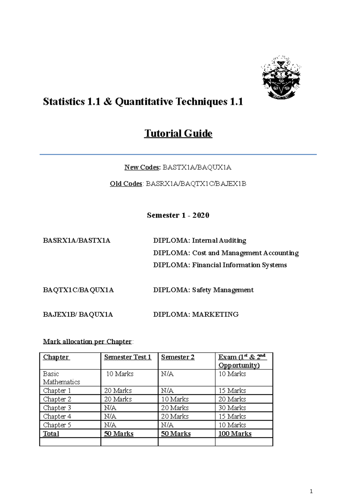Quantitative Techniques 600: Learner Guide for 1st Semester - Studocu