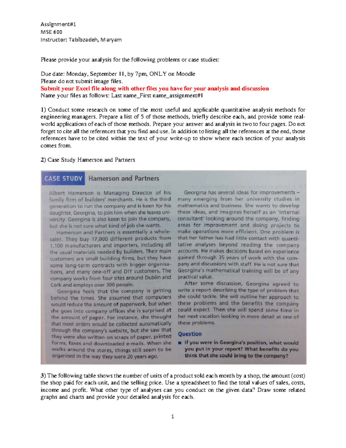 MSE 600 Assignmen#1 - METHODS FOR QUANTITATIVE ANALYSIS - Assignment ...