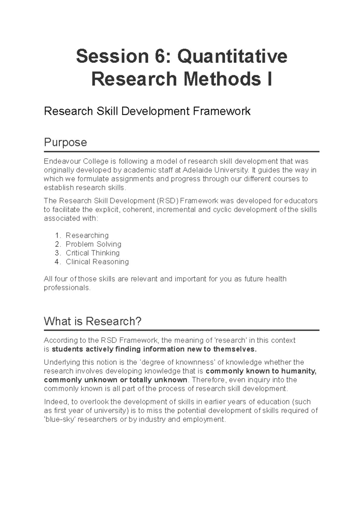 SN06 Quantitative Research Methods I - Session 6: Quantitative Research ...