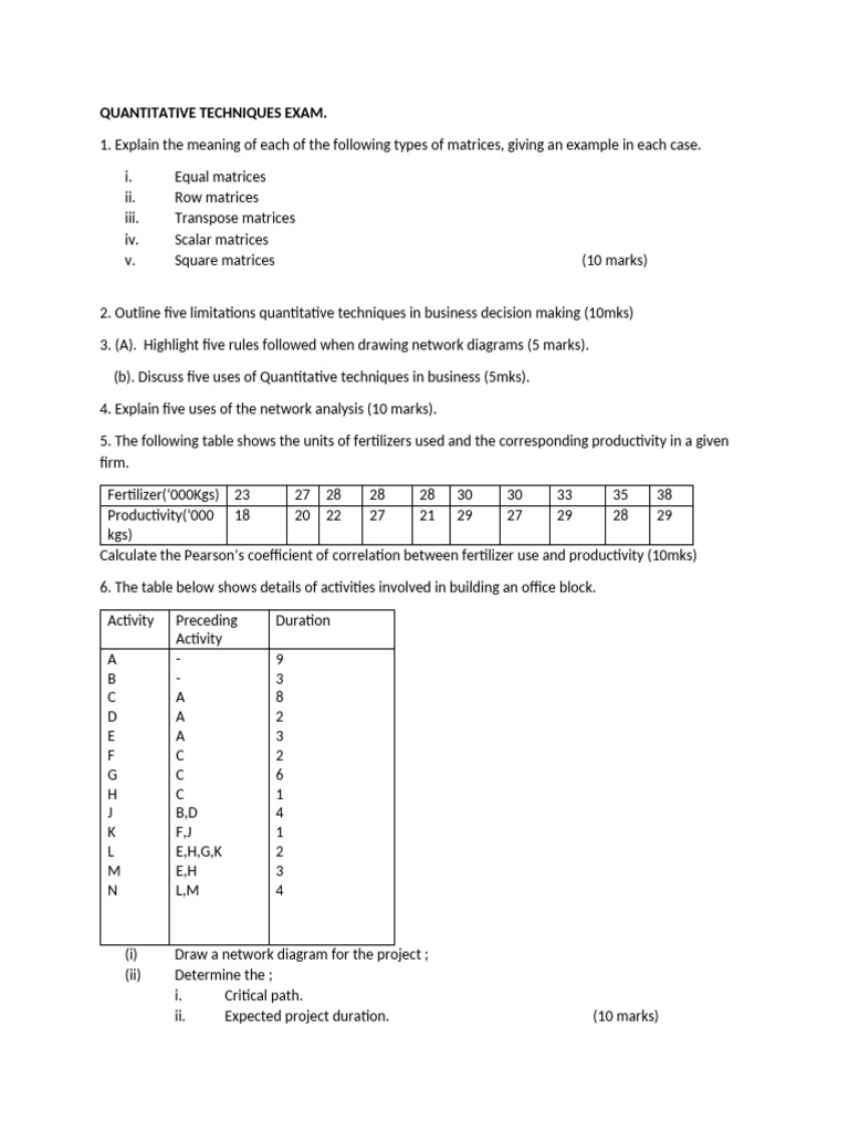 Quantitative Techniques - QUANTITATIVE TECHNIQUES ANSWER ANY FIVE ...