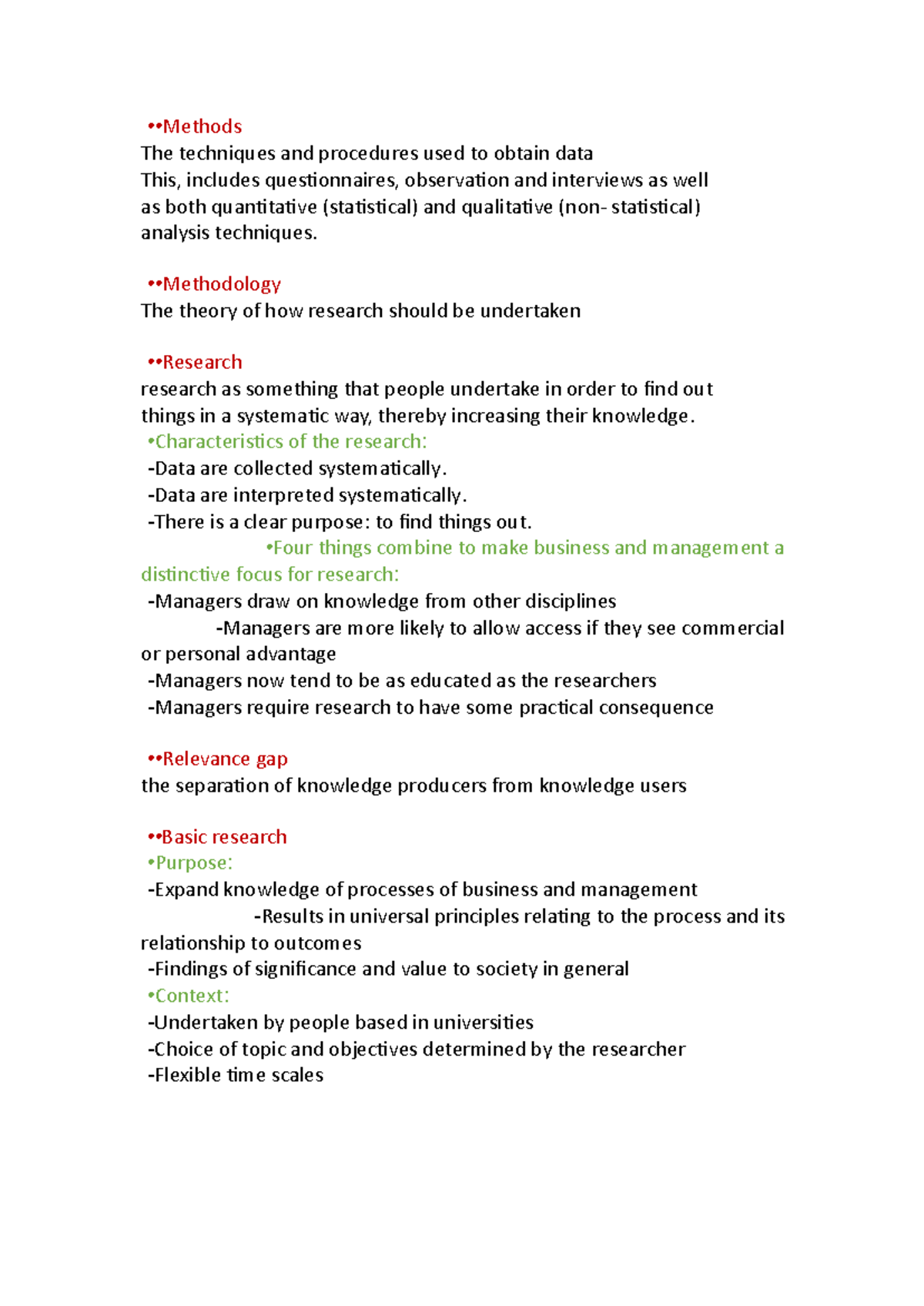 BUS600 - Summary of Research Methodology & Quantitative Analysis CH01 ...