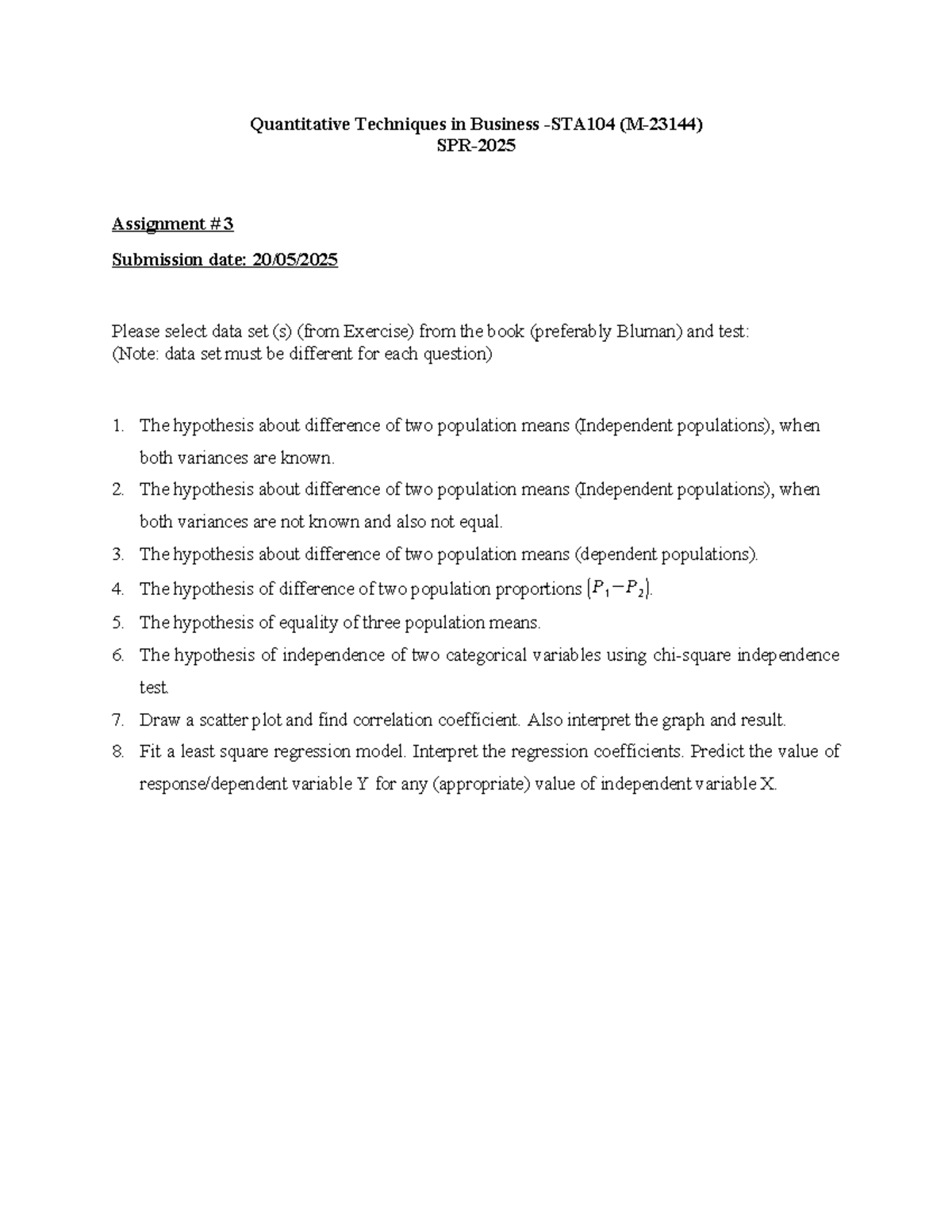 Assignment Copy - Additional information - Quantitative Techniques for ...