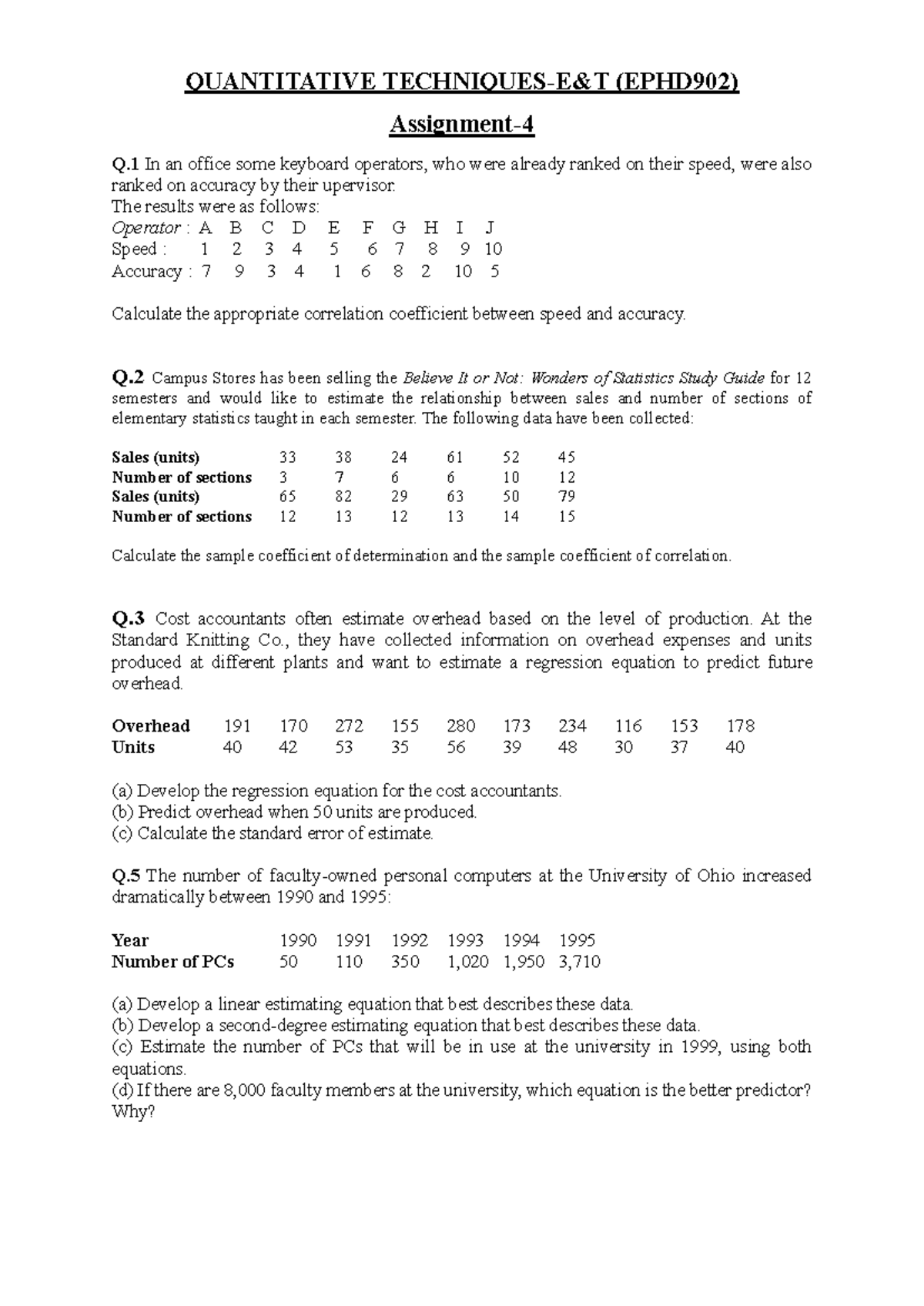 Assignment Module-4 - QUANTITATIVE TECHNIQUES-E&T (EPHD902) Assignment ...