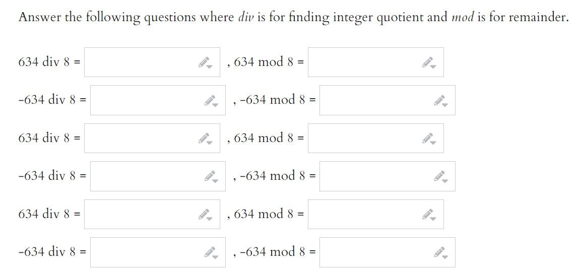 Solved Answer the following questions where div is for | Chegg.com