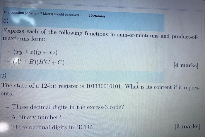 Solved This question (2 parts = 7 Marks) should be solved in | Chegg.com