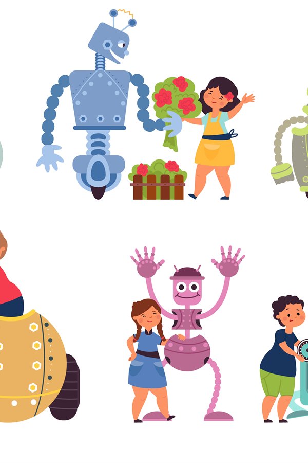 Premium Vector | Children assemble robot girl with robotic toy and ...