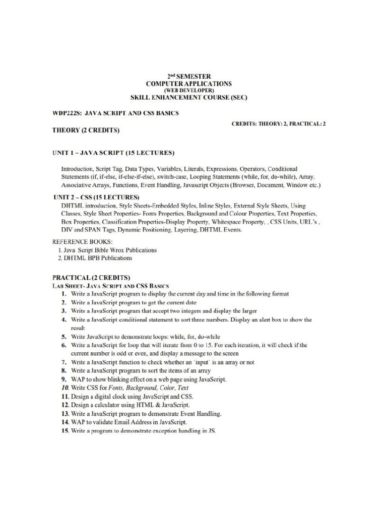 Skill JS and CSS 2nd Sem | PDF | Java Script | Computer Science