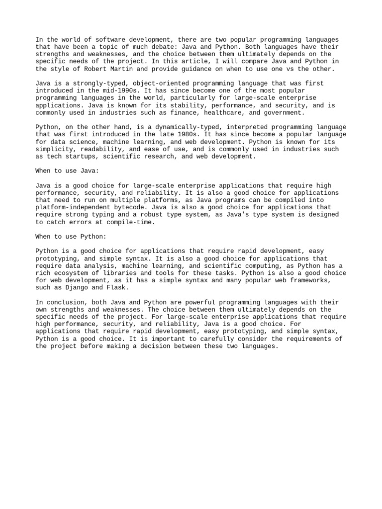 Why Java, or Why Python | PDF | Java (Programming Language) | Python ...