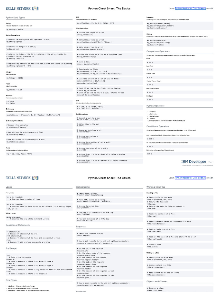 Python Basics Cheat Sheet 1750248355 | PDF | Python (Programming ...
