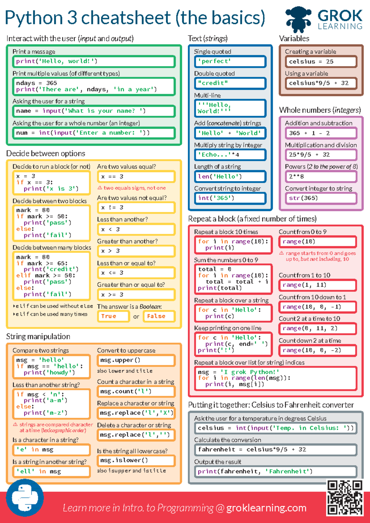 Python - Basics Cheat Sheet by purr - Download free from Cheatography ...