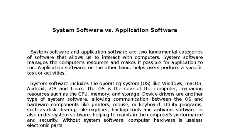 System software vs application software | DOCX
