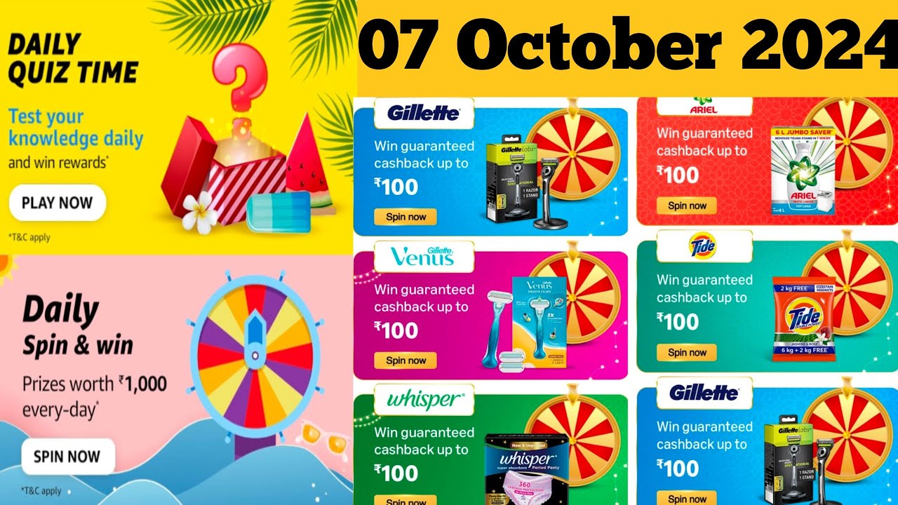 Amazon Daily Quiz Time Answers Today || Amazon Daily Quiz Today 7 ...