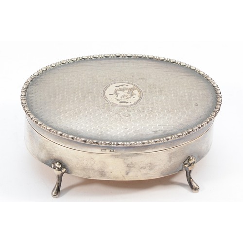 A silver oval trinket box, Birmingham 1921, with engine turned ...