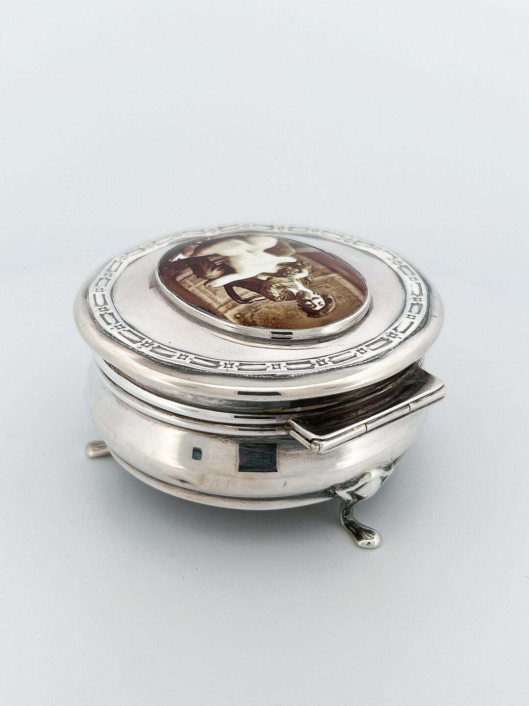 Antique Hallmarked 1913 Birmingham Sterling Silver Figural Trinket Box ...
