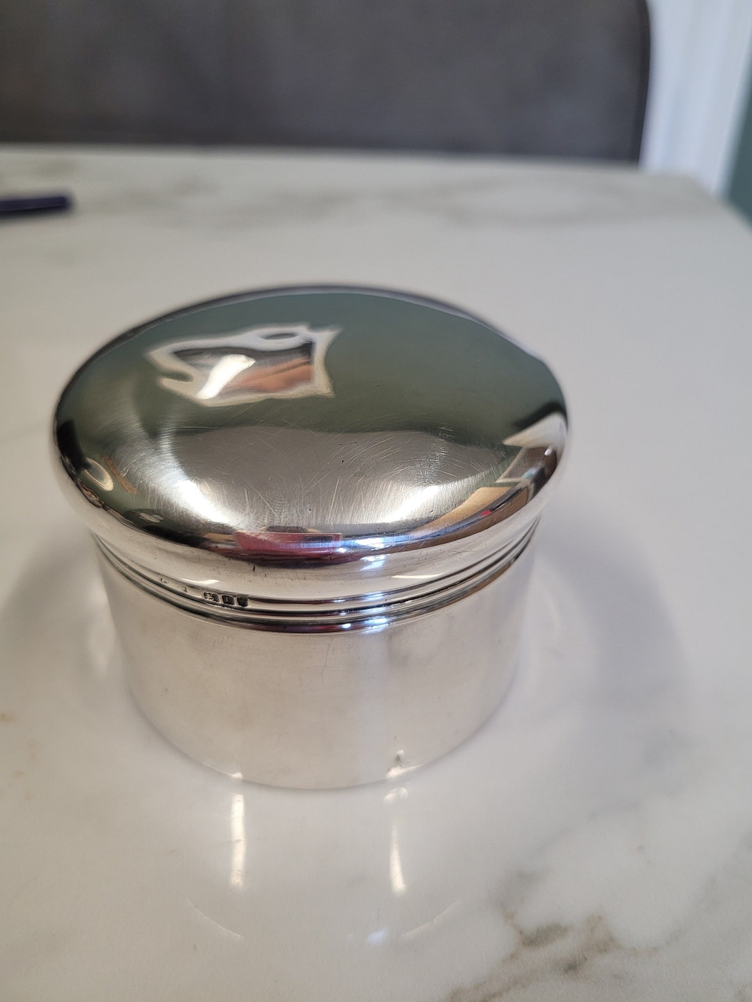 Antique Birmingham Silver 1927 Plain Simple Nice Size Round Trinket Box ...
