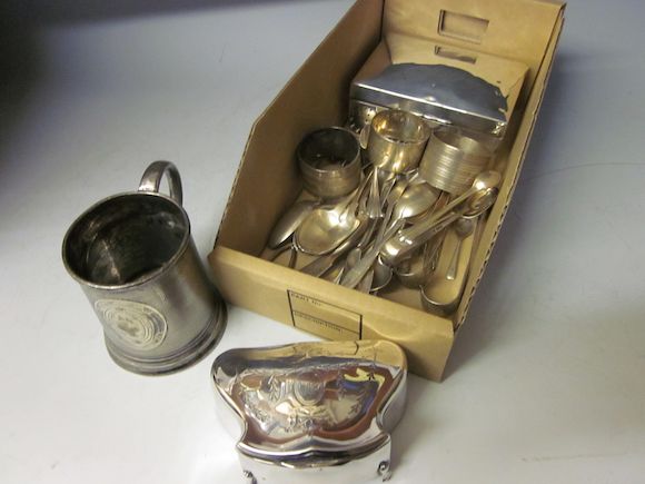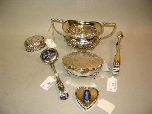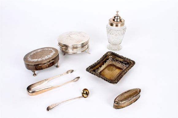A collection of silver items including a George IV silver trinket box ...