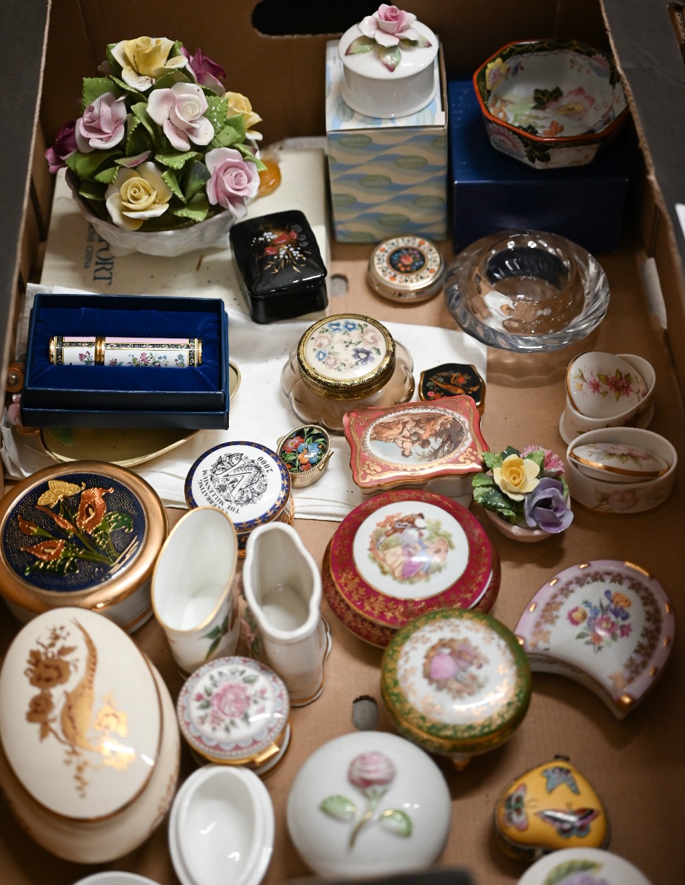 Collection of china trinket boxes, etc