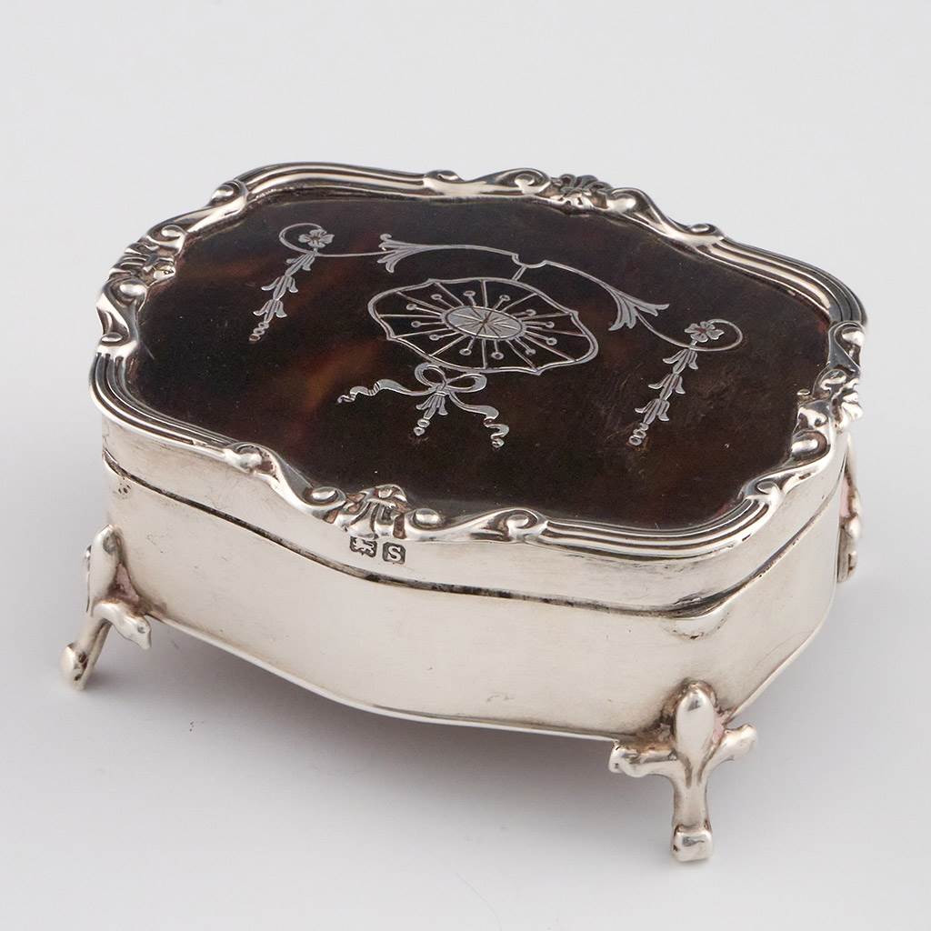 Fabulous Sterling Silver Inlaid Tortoiseshell Claw-Footed Trinket Box ...
