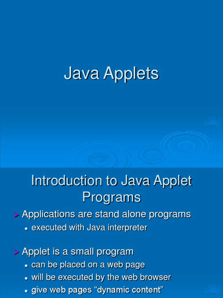 Based on this image's title: “An Introduction to Java Applets: Their Classes, Embedding in Web Pages ...”