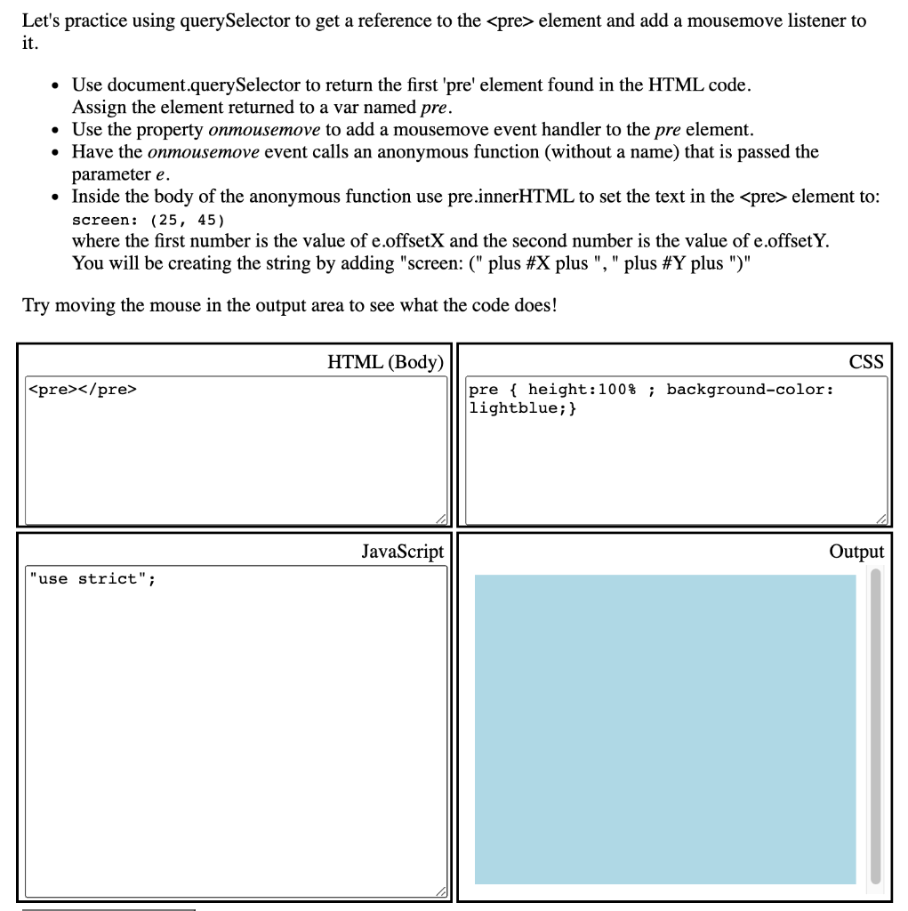 Solved Let's practice using querySelector to get a reference | Chegg.com