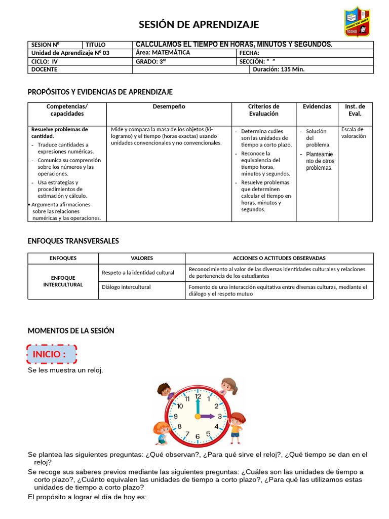 SES-MAT-Calculamos El Tiempo en Horas Minutos y Segundos | PDF