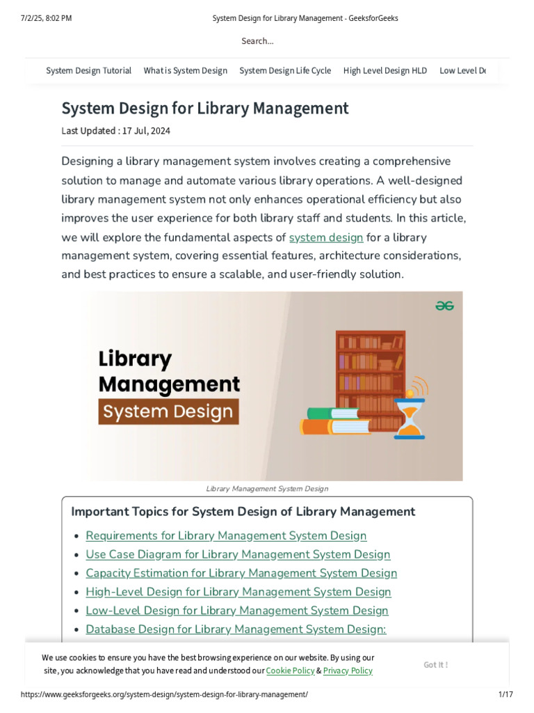 Based on this image's title: “System Design for Library Management - GeeksforGeeks”