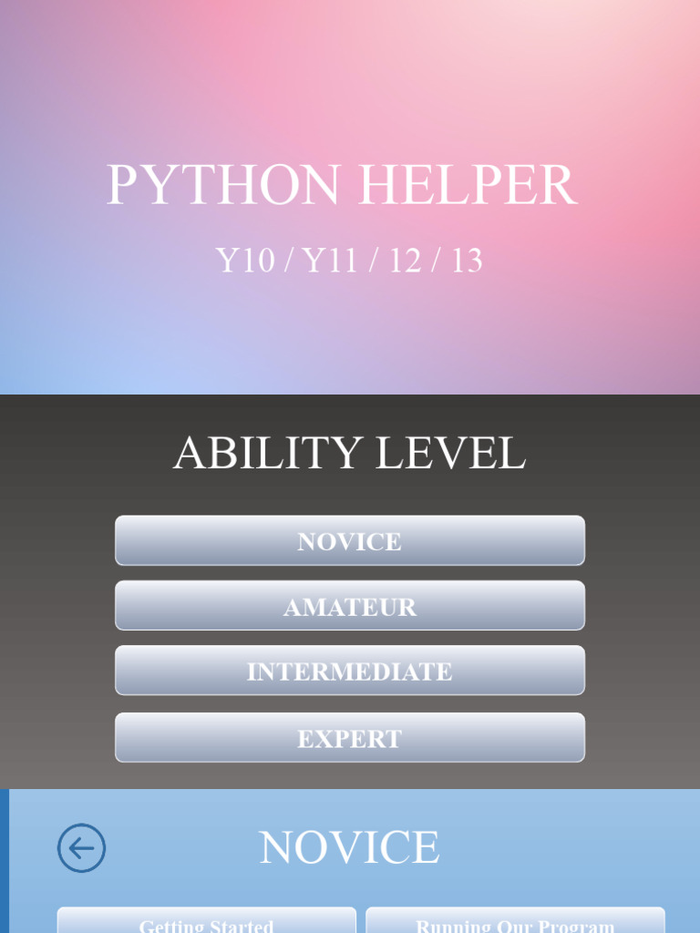 Based on this image's title: “Python Helper”