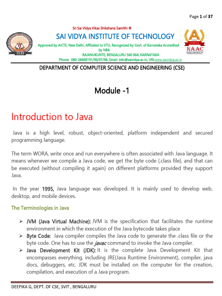 Java programming module 1 for bca students - PROGRAMMING IN JAVA MODULE ...