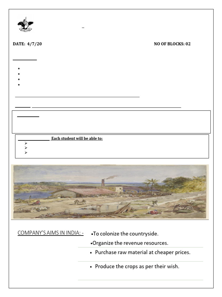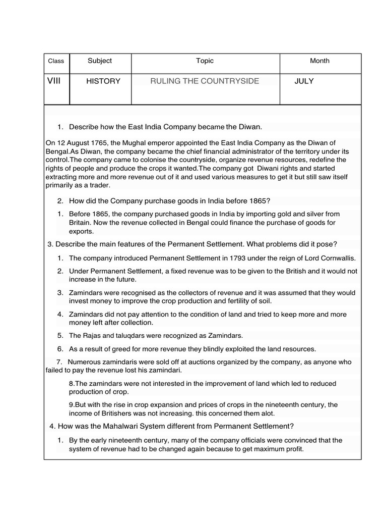 Grade 8 History: Ruling the Countryside Worksheet | PDF | British Raj