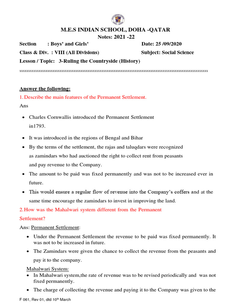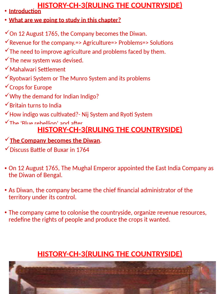 Class 8- Social Science (History) : Chapter -3; Ruling The Countryside ...