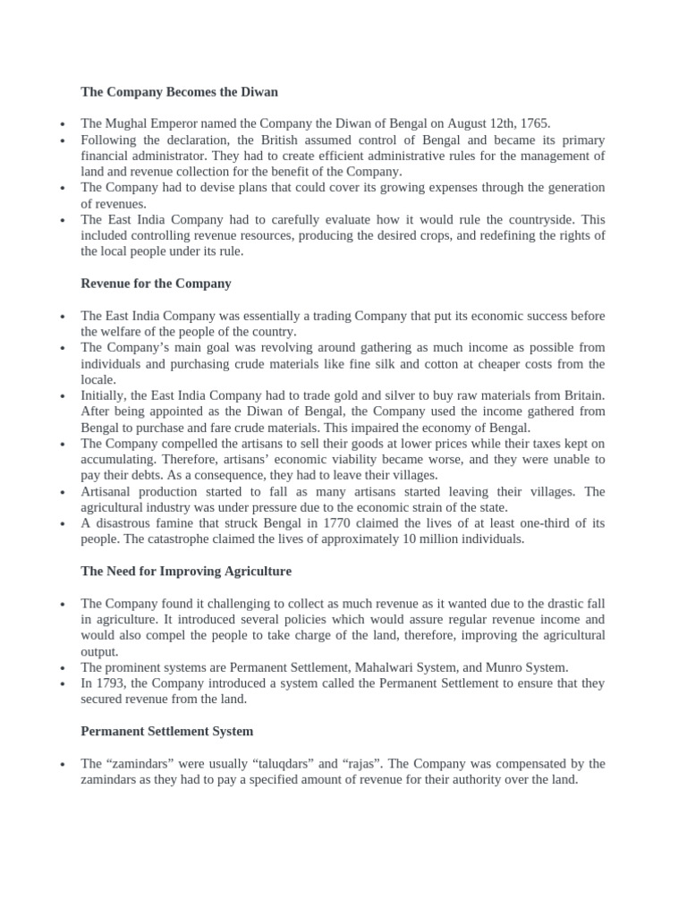 Class 12 History Chapter 9 Colonialism and The Countryside Notes (PDF ...