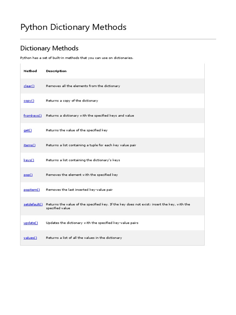 Python Dictionary Methods | PDF | Parameter (Computer Programming ...