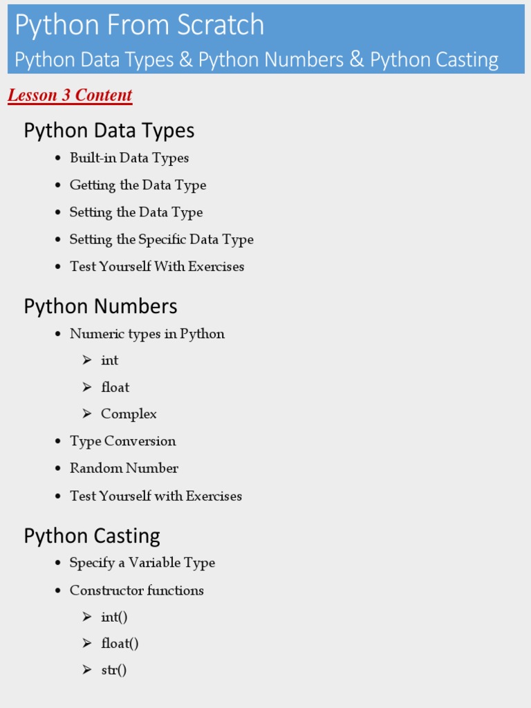 Python From Scratch Lesson 3 PDF (Python Data Types, Numbers, and ...