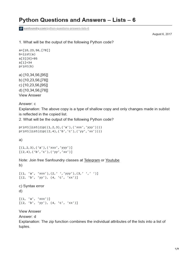 Python Questions and Answers Lists 6 | PDF | Parameter (Computer ...