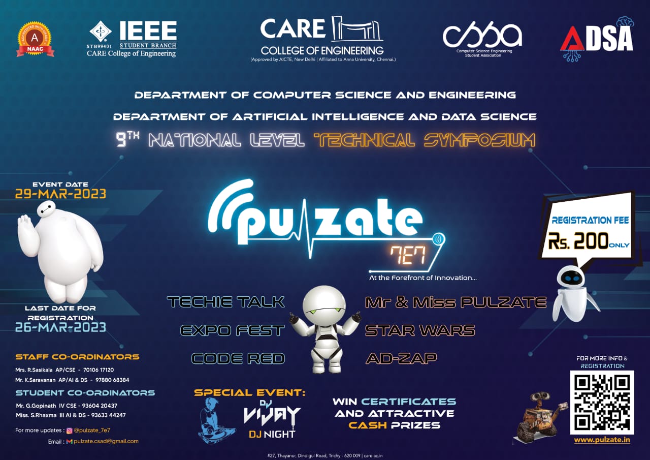 Pulzate 7E7, CARE College of Engineering, Technical Symposium ...