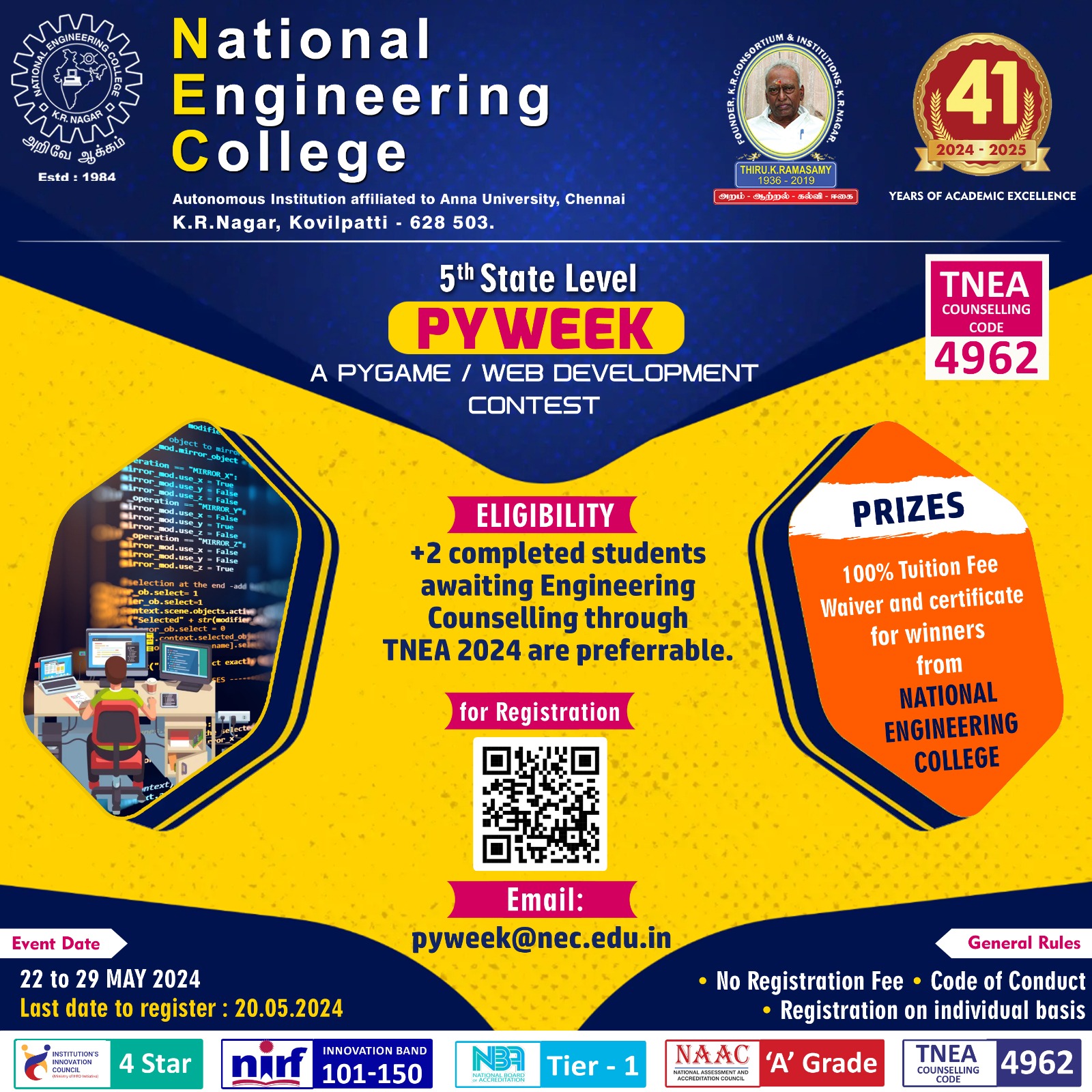 5th State level PYWEEK Contest 2024, National Engineering College ...