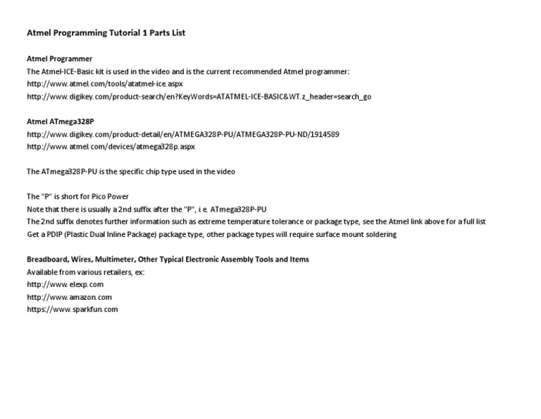 Atmel Programming Tutorial 1 Parts List | PDF | Business | Computers
