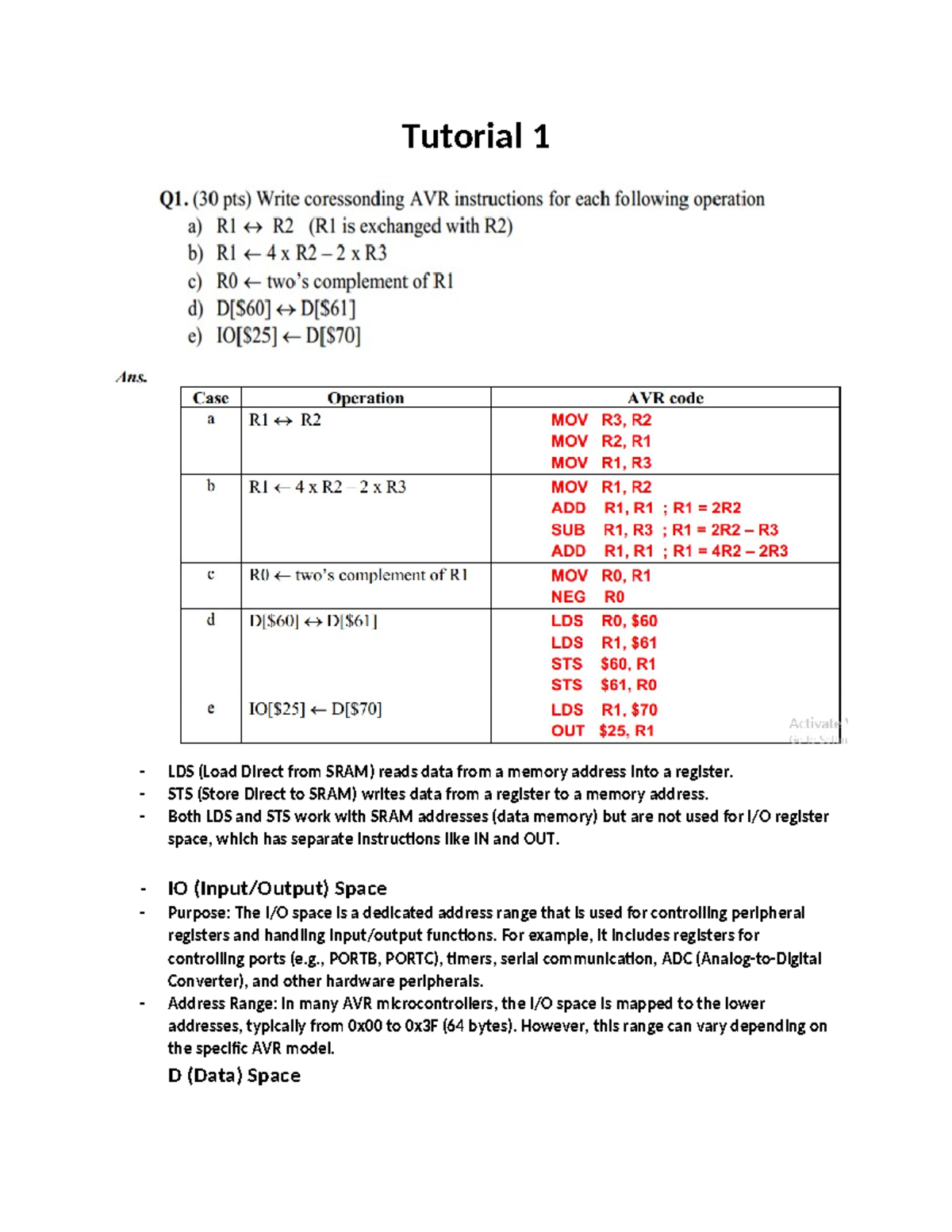 AVR Assembler Programming Tutorial 1: I/O and Memory Explanation - Studocu