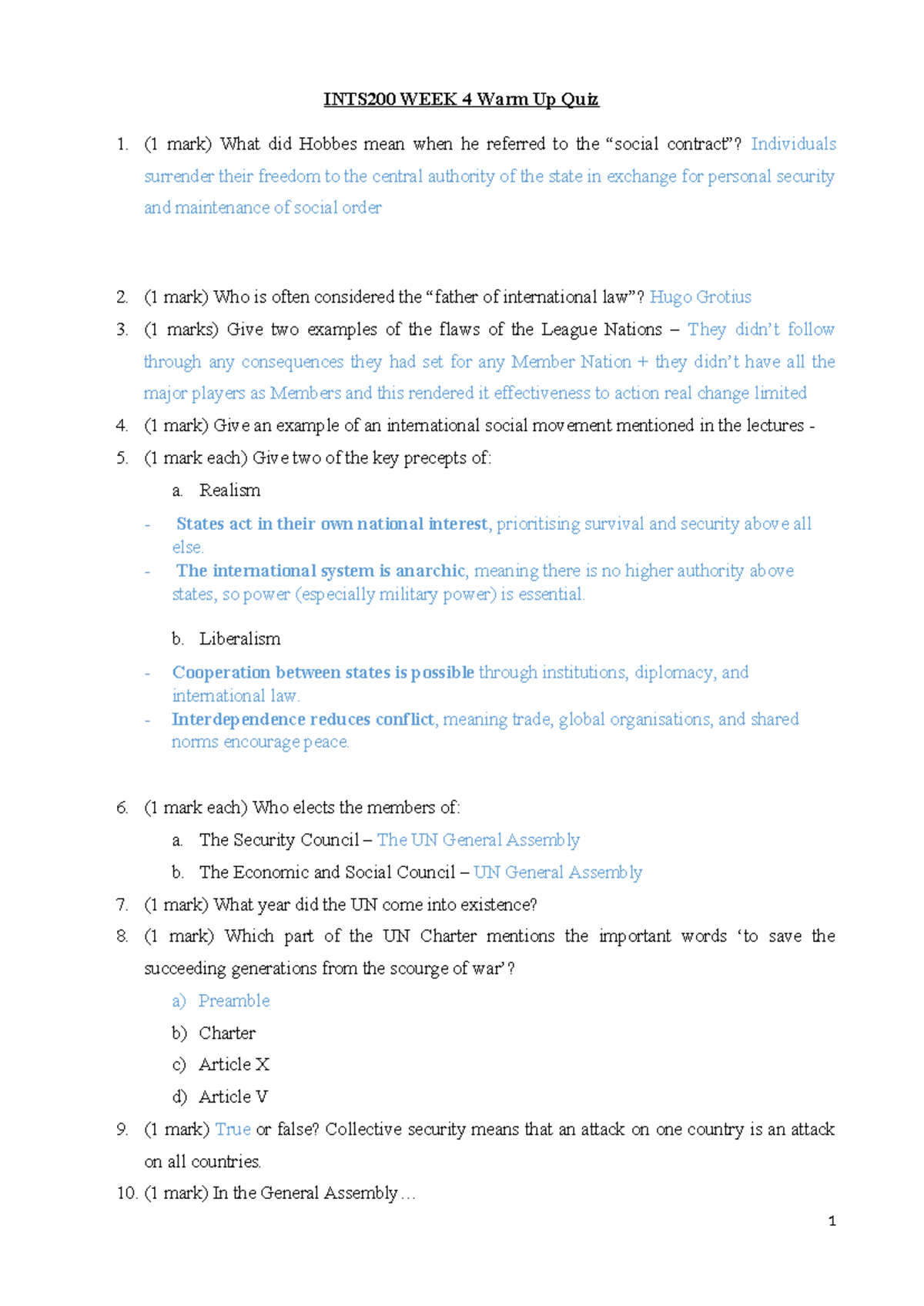 INTS200 Week 4 Warm-Up Quiz: Key Concepts & Questions - Studocu