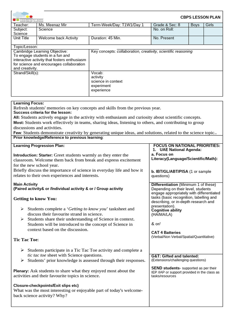 Wk1 LP-Getting To Know You (Y8) | PDF | Science | Learning