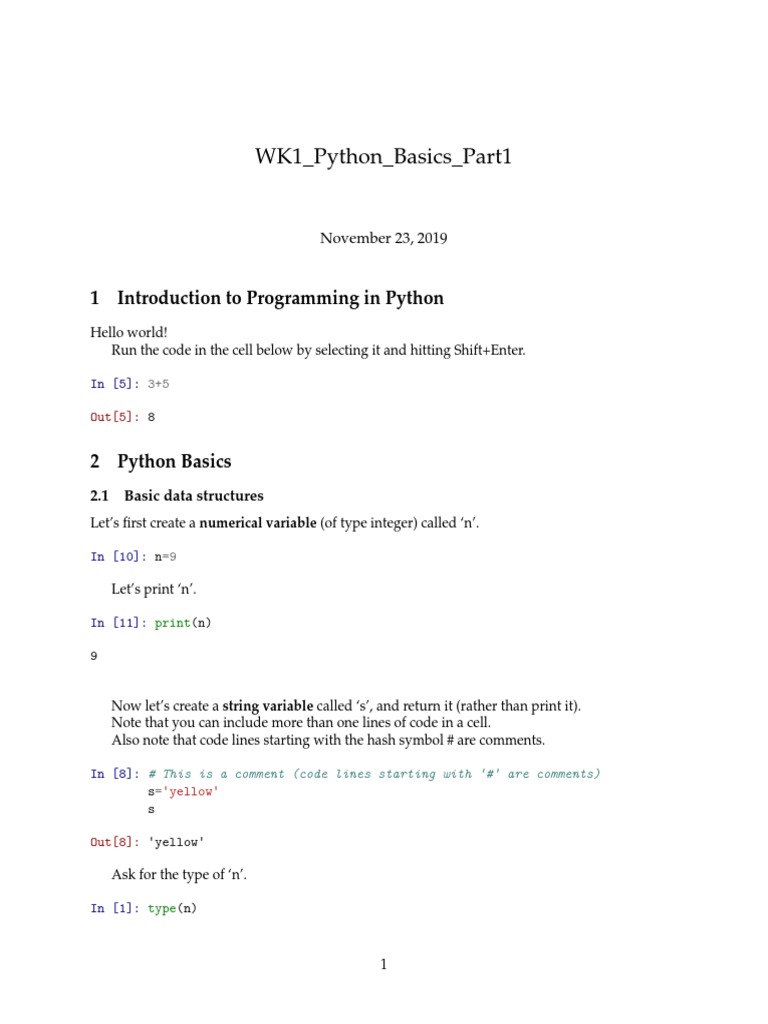 WK1 - Python - Basics - Part1: 1 Introduction To Programming in Python ...