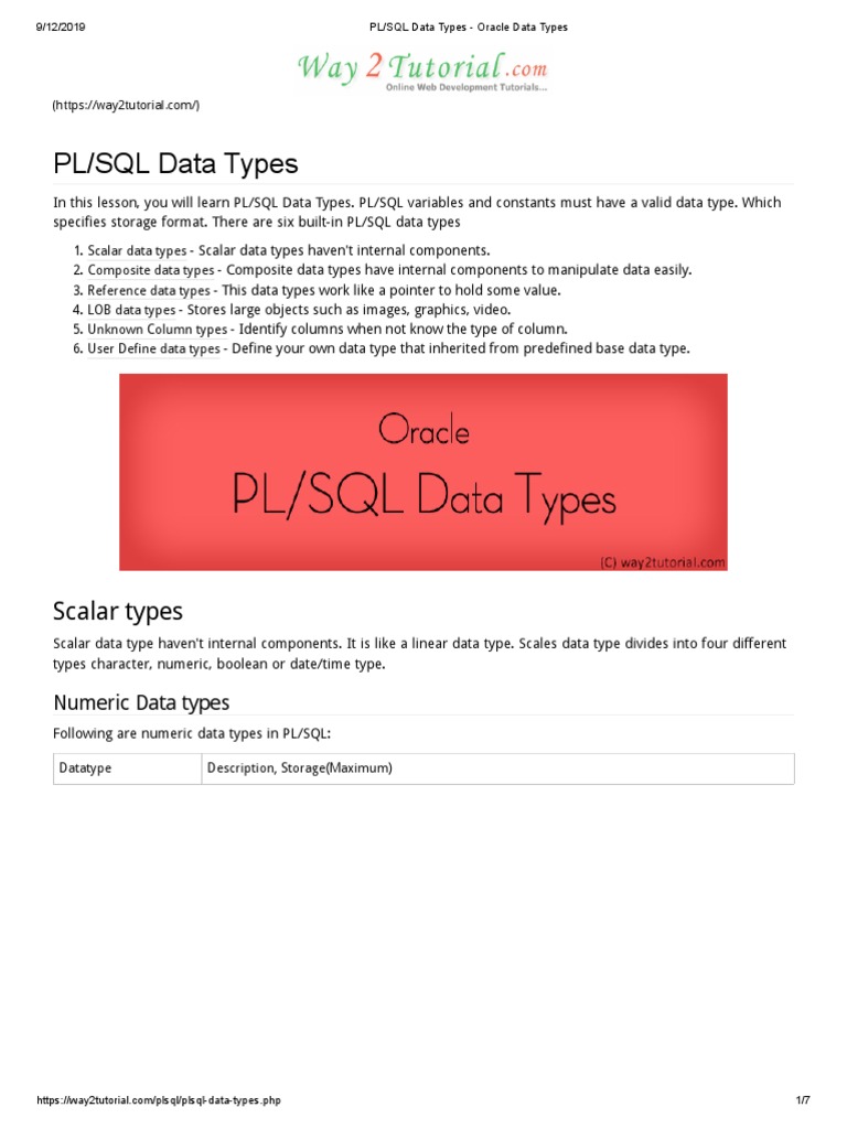 PL - SQL Data Types - Oracle Data Types | PDF | Data Type | Pl/Sql