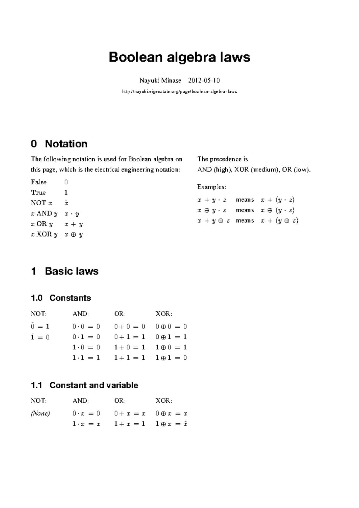 Boolean-algebra-laws - Boolean algebra laws Nayuki Minase 2012-05 ...