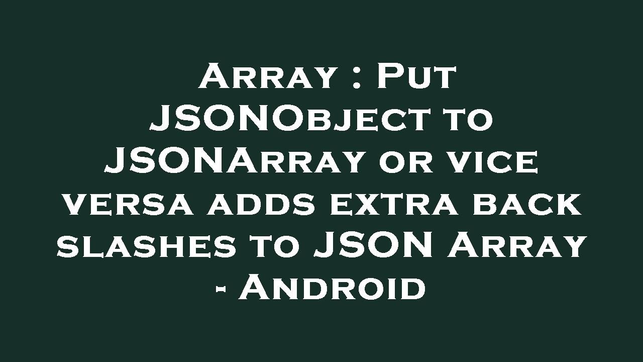 Array : Put JSONObject to JSONArray or vice versa adds extra back ...