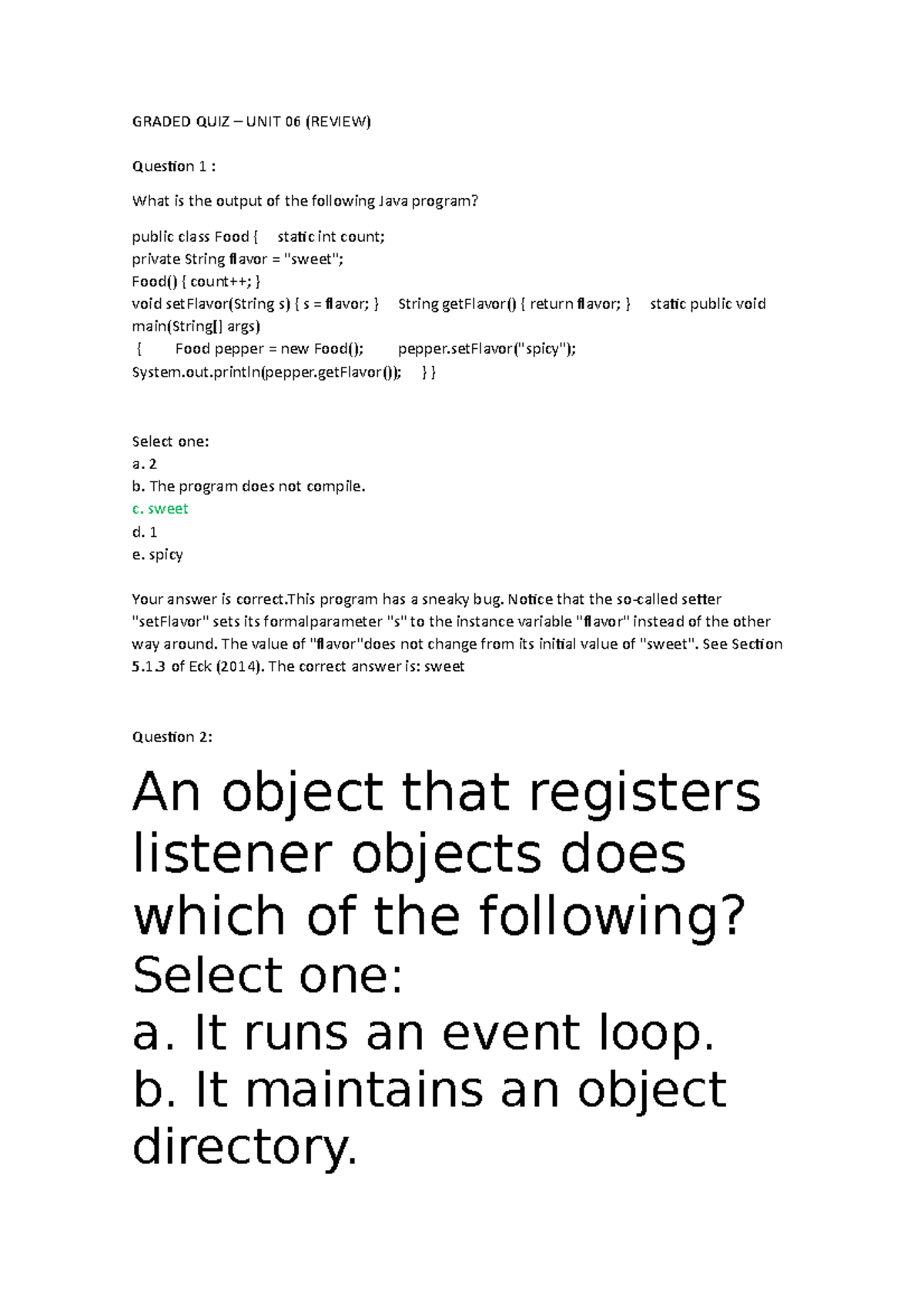 CS 3305-01 Graded Quiz Unit 6 Review and Responses Summary - Studocu