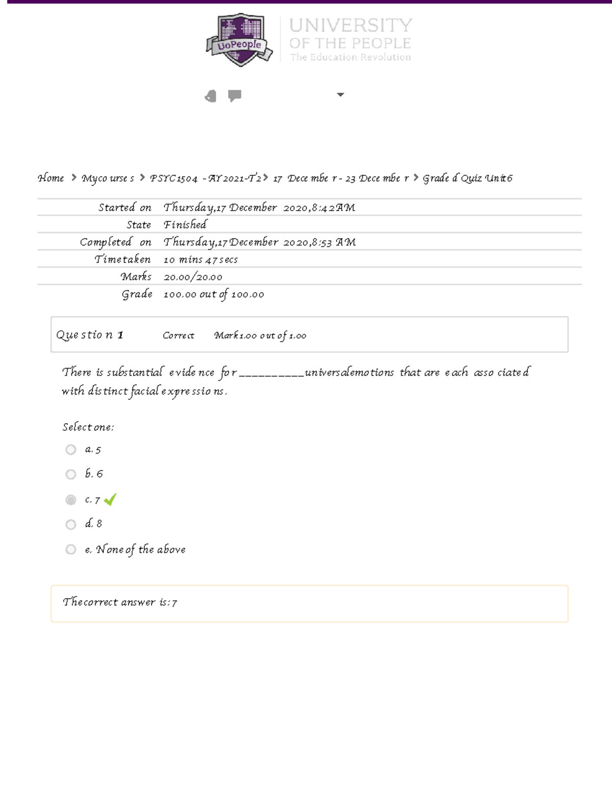 Self-Quiz Unit 6 Attempt review - Question 1 Correct Mark 1 out of 1 ...