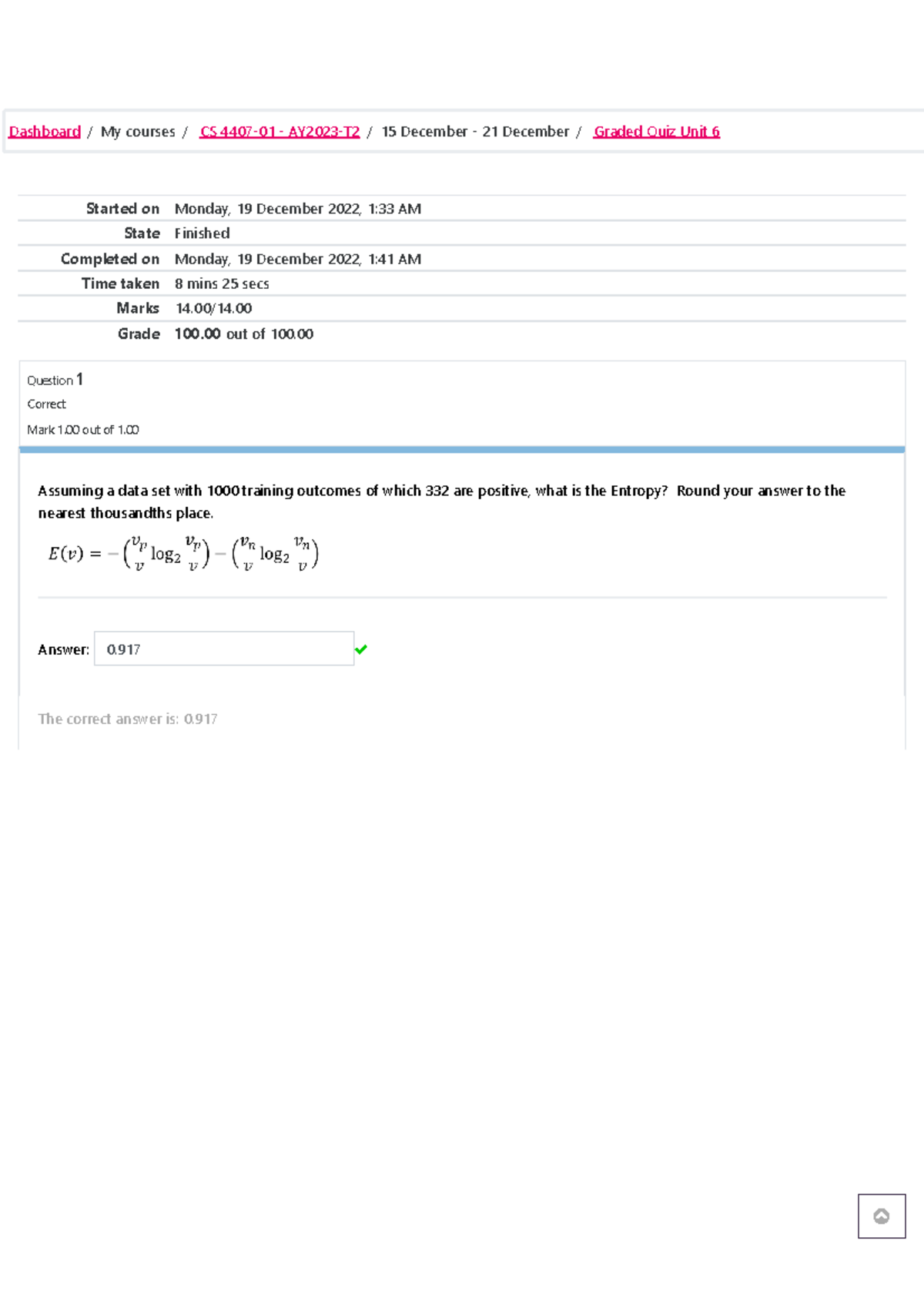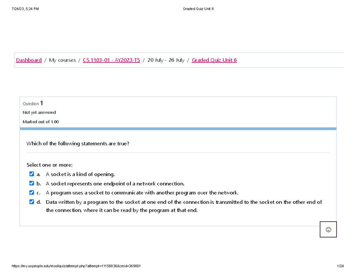 CS1101 Graded Quiz Unit6 - Marked - Question 1 Correct Mark 1 out of 1 ...