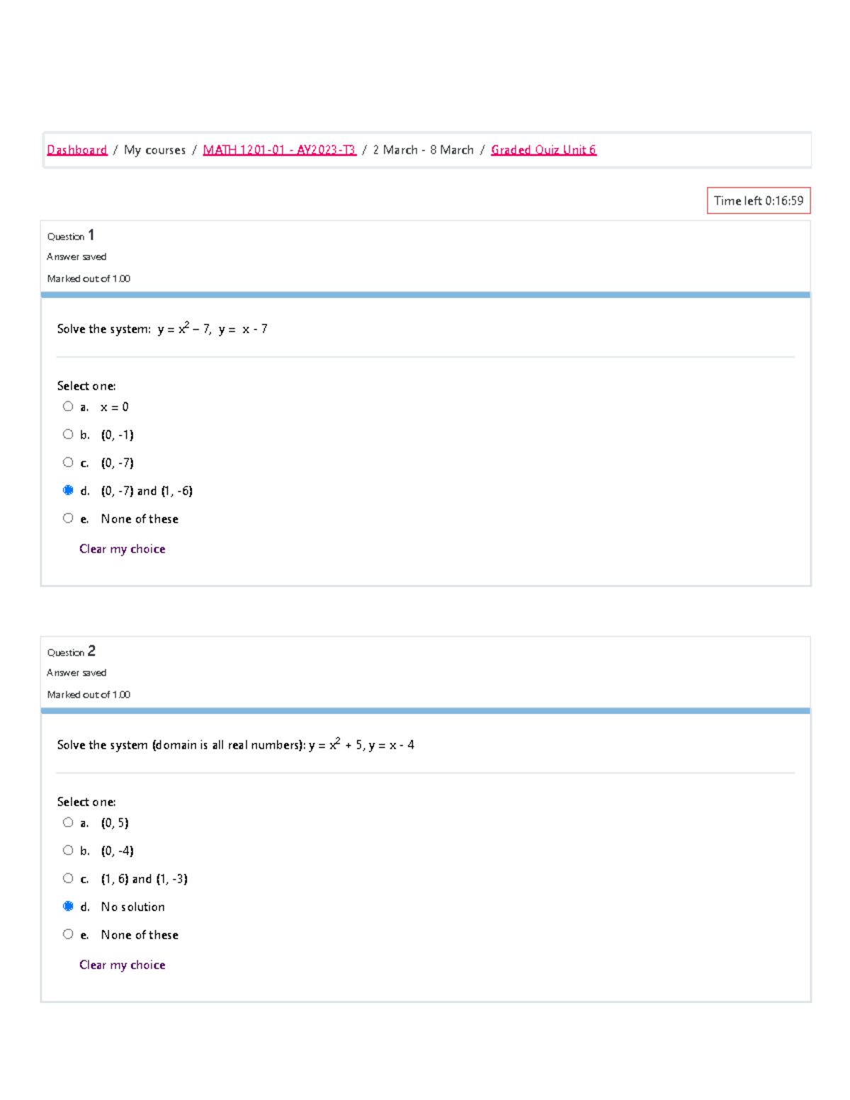 Graded Quiz Unit 6 (MATH 1302 - AY2024-T3) - Question 1 Correct Mark 1 ...